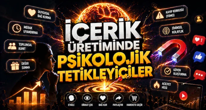 İçerik üretiminde psikolojik tetikleyiciler; kullanıcının dikkatini, güvenini, merakını ve aksiyon alma isteğini etkileyen stratejik mesaj unsurlarıdır.