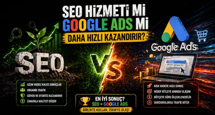 Kısa vadede Google Ads daha hızlı kazandırabilir. SEO ise uzun vadede daha kalıcı, güven veren ve maliyet avantajı sağlayan bir büyüme kanalıdır.