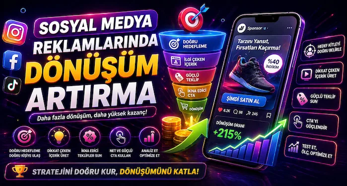 Bu yazıda sosyal medya reklamlarında dönüşüm oranını artıran temel unsurları, hangi reklam yapıların daha verimli çalıştığını, neden bazı kampanyaların çok tıklanıp az sonuç ürettiğini, reklam mesajı ile teklif yapısının nasıl optimize edilmesi gerektiğini ve daha güçlü dönüşüm için hangi alanların mutlaka geliştirilmesi gerektiğini detaylı şekilde ele alıyoruz.