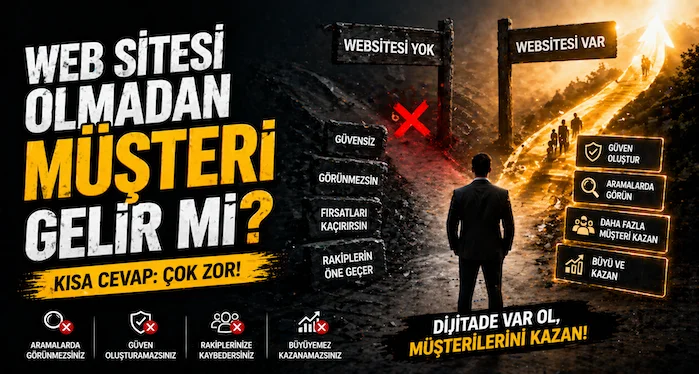 Bu yazıda web sitesi olmadan müşteri kazanmanın mümkün olup olmadığını, Google Maps ve sosyal medya görünürlüğünün sınırlarını, web sitesinin SEO ve reklam performansına katkısını ve işletmelerin neden dijital bir merkeze ihtiyaç duyduğunu detaylı şekilde ele alıyoruz.